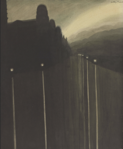 Dans la constellation symboliste, le Belge Léon Spilliaert (1881–1946) est le peintre de la nuit, des solitudes et des vertiges. Au bord de l’angoisse, ses œuvres poétiques et sombres sont profondément attachées à l’univers d’Ostende, ville huppée de la côte belge. Ce contemporain des écrivains Maeterlinck et Verhaeren fréquente les milieux littéraires entre Bruxelles et Paris, deux capitales des arts au XIXe siècle. Plus porté sur les arts graphiques que sur la peinture, Spilliaert a parfois été considéré comme un précurseur du surréalisme en raison de son goût pour l’insolite et les atmosphères étranges.